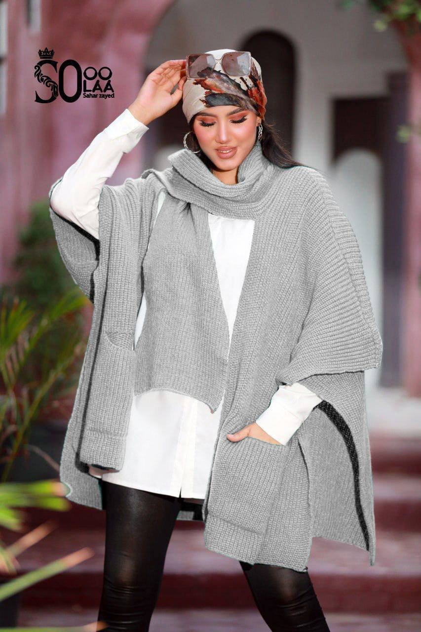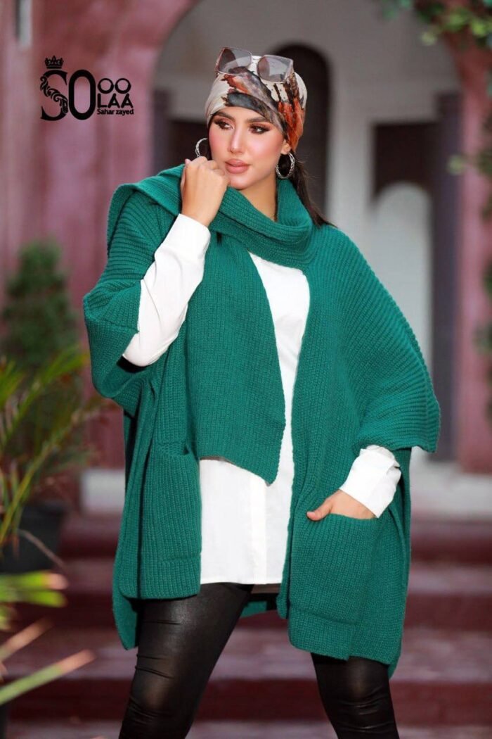 مش بس كده احنا عملنالك كوفيه معاه ملتصقين ببعض لمزيد من التدفئة يعني ٢ في ١. بانشو وكوفيه